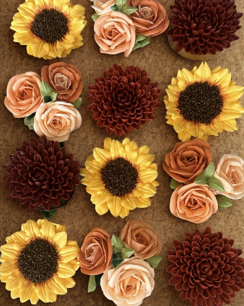 Hand-piped buttercream cupcake blooms
